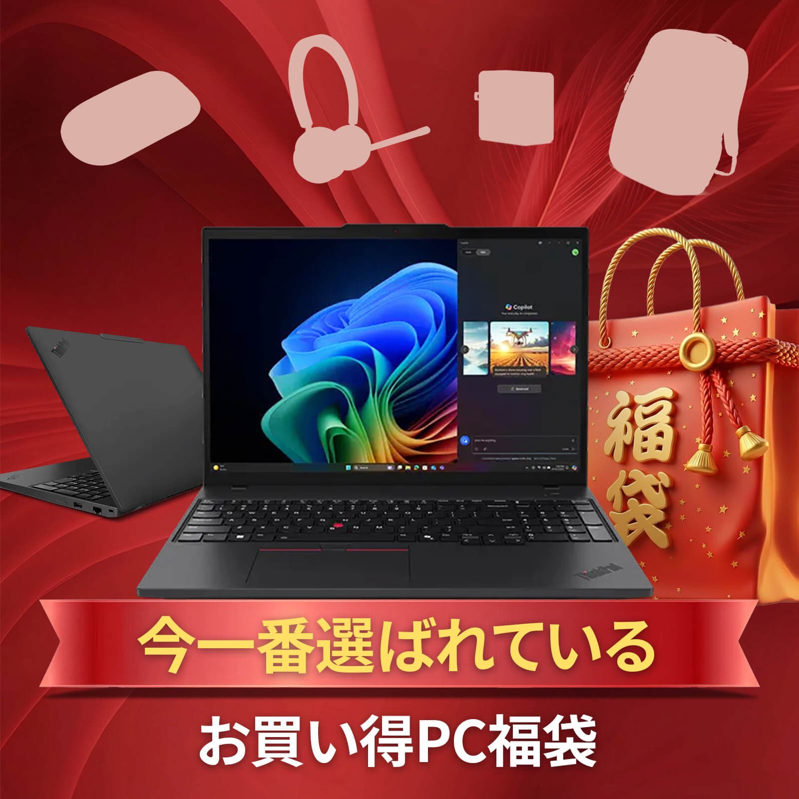 Lenovoが年末年始セールを開催中。1月15日まで。この時期特有の福袋商品が並ぶ。